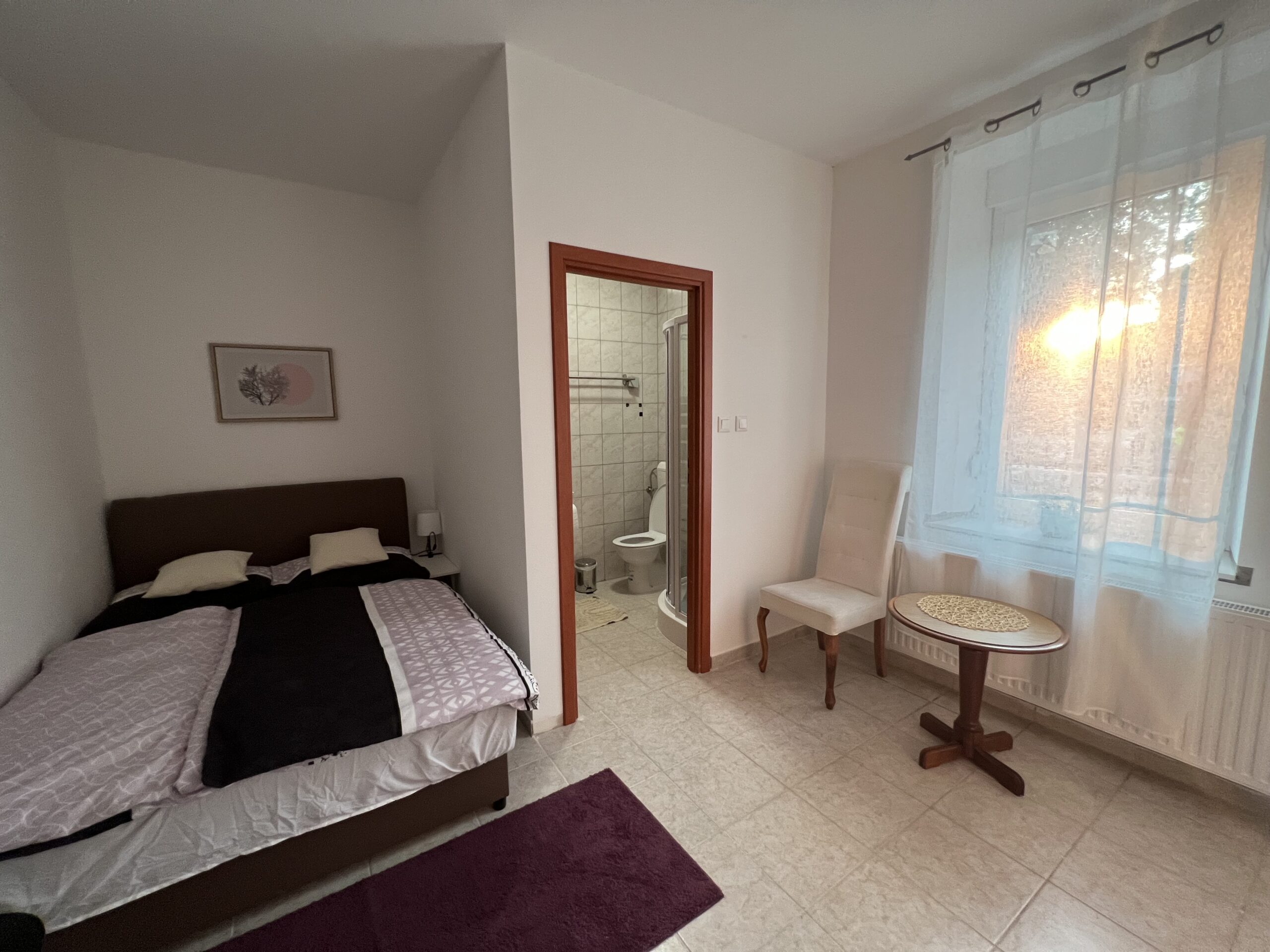 Apartman 2 Kombinirani dnevni boravak s kuhinjom, potpuno opremljenom kupaonicom i spavaćom sobom. 1 Bračni krevet + dodatni ležaj Broj osoba 4
